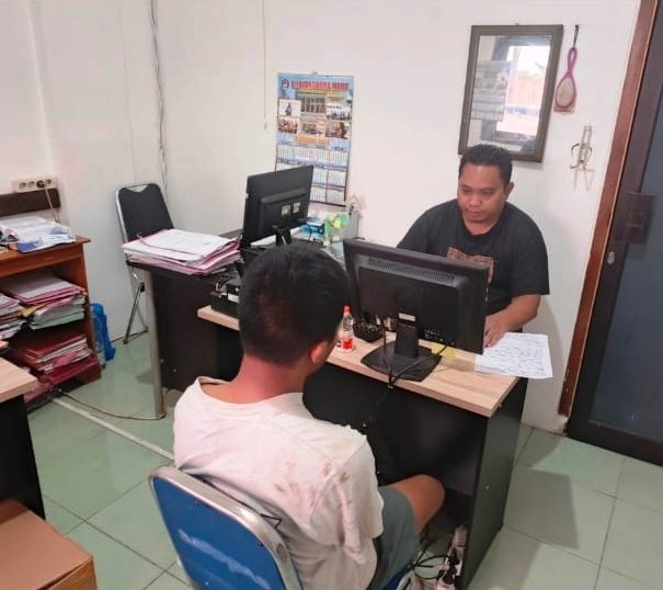 Terduga pelaku saat menjalani pemeriksaan oleh penyidik di ruang unit Reskrim Polsek setempat terkait kasus dugaan tawuran yang menyebabkan seorang pelajar mengalami luka akibat senjata tajam, Minggu (22/2/2026) dini hari.